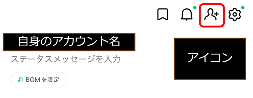 LINEの「ホーム」タブ右上にある